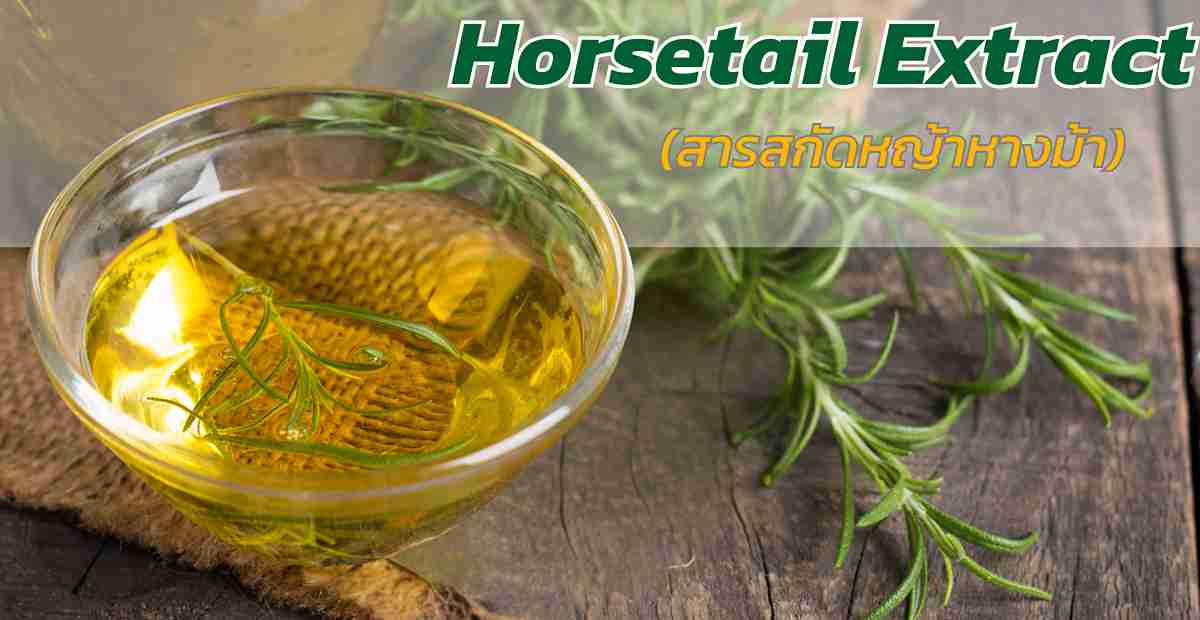 สารสกัดจากหางม้า Horsetails extract สกัดได้จากพืชที่มีชื่อสามัญว่า horsetails เป็นพืชในตระกูลเฟิร์น สามารถสูงได้ถึง 90 ฟุต ที่เราเรียก “หญ้าหางม้า” ก็เพราะว่าลำต้นมันคล้ายๆกับหางของม้านั่นเอง และยังเป็นกลุ่มเฟิร์นโบราณที่มีเมล็ด จากซากฟอสซิล ทำให้นักวิทยาศาสตร์ทราบว่า พืชในกลุ่มนี้มีมาแล้วตั้งแต่ 350 ล้านปีก่อน สารที่ได้จากจากการสกัดหญ้าหางม้า เรียกว่า Equisetum Arvense มีประโยชน์ต่อเส้นผมอย่างมาก และยังเป็นสารสกัดจากพืชที่มีความปลอดภัยสูงต่อร่างกายคนเราอีกด้วย หญ้าหางม้าจึงป้องกันผมร่วงได้จริงจากแร่ธาตุ-สารอาหารของมัน หญ้าหางม้าไม่เพียงแต่ใช้สำหรับป้องกันผมร่วงเท่านั้น แต่เดิมแพทย์แผนโบราณใช้หญ้าหางม้าสำหรับรักษาอาการบวมน้ำ ป้องกันนิ่วไต บำรุงไต ป้องกันนิ่วในกระเพาะปัสสาวะ และป้องกันการติดเชื้อในกระเพาะปัสสาวะ นอกจากนี้ ยังใช้ในการรักษาวัณโรค, โรคข้อ, โรคข้อเข่าเสื่อม, กระดูกอ่อนแอ (โรคกระดูกพรุน), โรคเกาต์ อีกด้วย