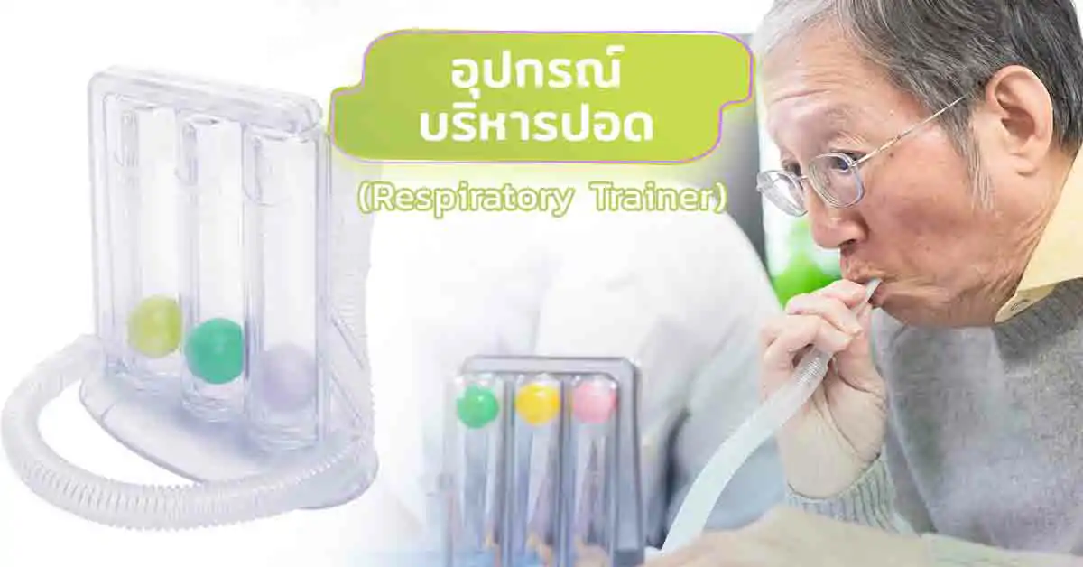 อุปกรณ์บริหารปอด (Respiratory Trainer) หรือที่เรียกว่า Triflow เป็นเครื่องมือที่ช่วยฟื้นฟูและเสริมความแข็งแรงของปอด เหมาะสำหรับผู้ป่วยหลังผ่าตัด ผู้สูงอายุ หรือผู้ที่ต้องการเพิ่มความจุปอด เครื่องจะทำงานโดยให้ผู้ใช้หายใจเข้าผ่านท่อ Mouthpiece เพื่อยกลูกบอลในแต่ละช่องที่กำหนดตามปริมาตรอากาศ การฝึกอย่างต่อเนื่องช่วยให้ปอดขยายตัวดีขึ้น เพิ่มประสิทธิภาพในการหายใจ ลดความเสี่ยงภาวะแทรกซ้อน และช่วยให้ผู้ป่วยฟื้นตัวได้เร็วขึ้นในการดำเนินชีวิตประจำวัน