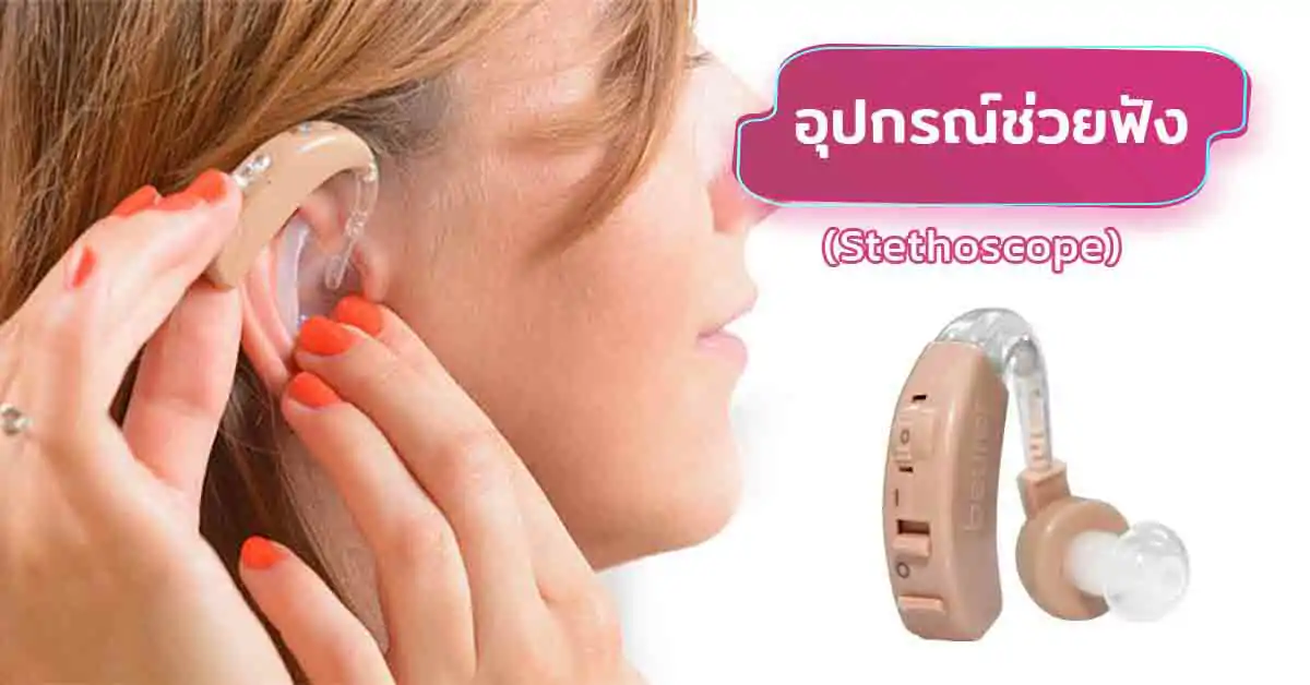 อุปกรณ์ช่วยฟัง (Stethoscope) หรือที่เรียกว่าเครื่องช่วยฟัง (Hearing aids) เป็นอุปกรณ์ที่ช่วยขยายเสียงเพื่อให้ผู้ที่มีความบกพร่องทางการได้ยินสามารถรับเสียงได้ชัดเจนขึ้น ช่วยให้การสื่อสารและการใช้ชีวิตประจำวันเป็นไปอย่างราบรื่น เครื่องช่วยฟังแบ่งเป็น 2 ประเภทหลัก คือ เครื่องช่วยฟังชนิดฟังเสียงทางอากาศ (Air conduction) ที่ใส่ไว้ที่หูเพื่อส่งเสียงผ่านช่องหู และเครื่องช่วยฟังชนิดฟังเสียงทางกระดูก (Bone conduction) ที่ส่งเสียงผ่านกระดูกหลังใบหู เหมาะสำหรับผู้ที่มีปัญหาช่องหูตีบหรือมีภาวะหนองในหูเรื้อรัง